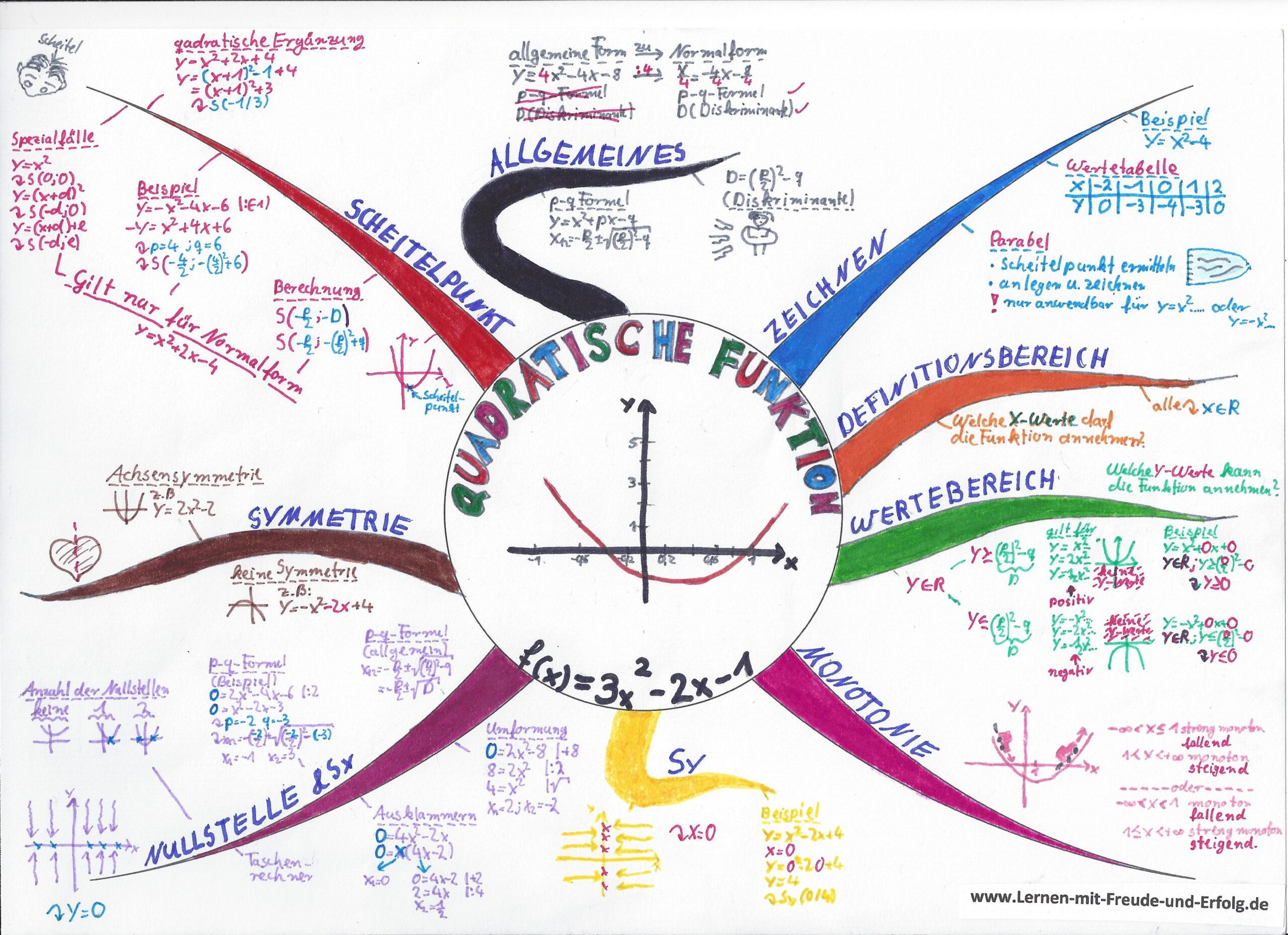 beschreiben Parabeln und helfen dabei, viele mathematische Zusammenhänge zu verstehen und darzustellen. Die folgende Mindmap zeigt dir alle wichtigen Aspekte quadratischer Funktionen auf einen Blick: